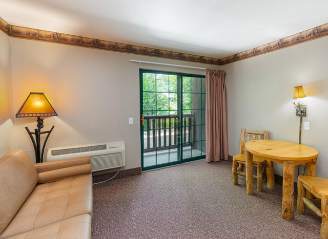 Our Accessible King Suite has a king-size bed and a queen sofa. Accessible features include a private bathroom with a roll-in shower, shower seat and roll-under sink. Additional room features are a table and two chairs, cable television, coffee maker, microwave, refrigerator, hair dryer and free Wi-Fi internet access.
